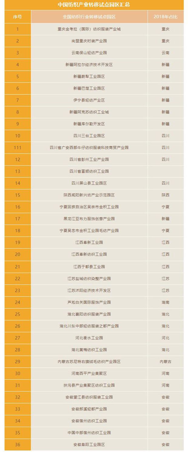 2010年工信部發(fā)布《關(guān)于推進(jìn)紡織產(chǎn)業(yè)轉(zhuǎn)移的指導(dǎo)意見(jiàn)》中對(duì)紡織產(chǎn)業(yè)的遷移做出引導(dǎo)方向,主要思路是紡織行業(yè)地理上逐漸要向中西部地區(qū)轉(zhuǎn)移。截止2019年底,國(guó)內(nèi)已經(jīng)有36個(gè)全國(guó)產(chǎn)業(yè)轉(zhuǎn)移試點(diǎn)園區(qū),主要分布在新疆、四川、湖北、安徽等中西部地區(qū)。由于東部沿海地區(qū)環(huán)境保護(hù)趨嚴(yán),在環(huán)保方面成本上升,加上人力成本增加,進(jìn)一步壓縮企業(yè)利潤(rùn)空間。為了減少優(yōu)質(zhì)紡織企業(yè)向東南亞轉(zhuǎn)移,滿足國(guó)內(nèi)市場(chǎng)需求,突出成本優(yōu)勢(shì),國(guó)內(nèi)紡織行業(yè)逐步轉(zhuǎn)移,推動(dòng)紡織結(jié)構(gòu)調(diào)整,優(yōu)化產(chǎn)業(yè)布局。